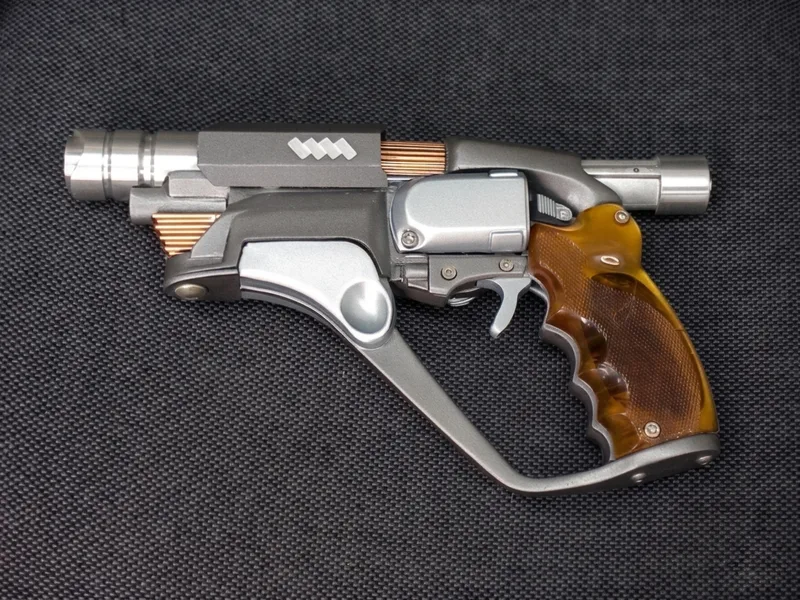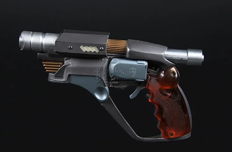 This Becca's weapon at the time of its completion. Astute observers will see similarities to Deckard's sidearm from BLADERUNNER. This was due to the Prop Department's decision to utilize a commercially available replica kit of his iconic blaster as a starting point for the design.