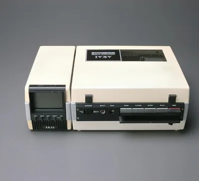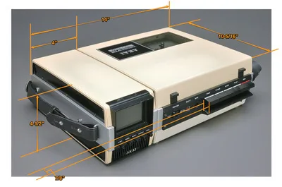One of the smallest video tape recorders of it's kind. It's carried as shown, via a removable shoulder strap.