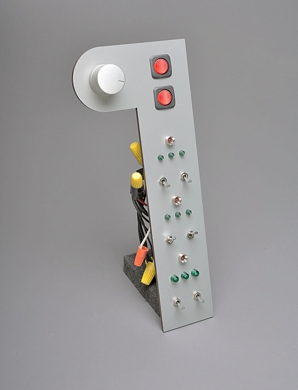 Asymmetrical Control Panel with Control Knob, 6-Toggle Switches, 2-Rocker Switches and Green LED Indicators (Custom Design - Simulated Operation)
