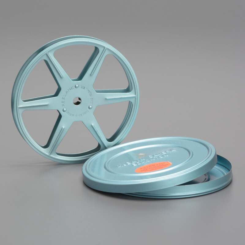 REELANCE Thread-O-Matic Standard-8mm/Super-8mm 200' Film Reel and Can - Metal - Light Blue Metallic