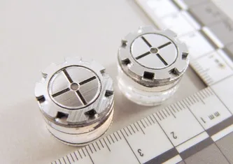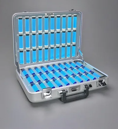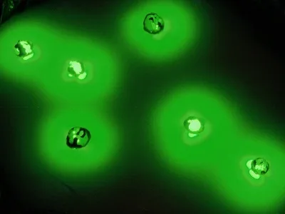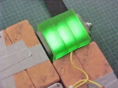 Close-up of glowing "processed kryptonite wafers".