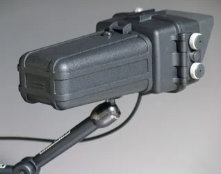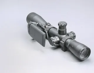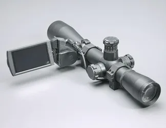 The working monitor & custom-built articulated mount were attached to a client provided, rented, rifle-scope. An existing attachment point was used, so no physical modification of the scope was required.