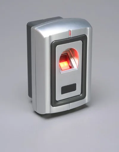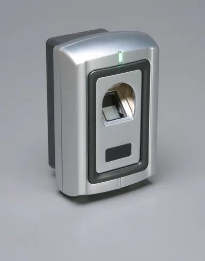 Fingerprint access control unit. Features self-contained operation.