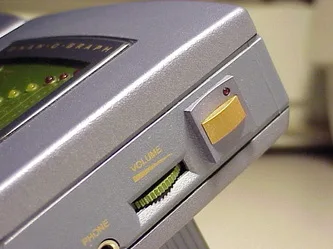 Audio volume, output jack, and power switch detail.