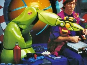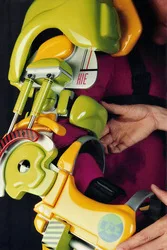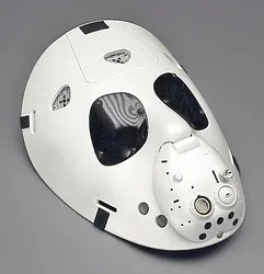 Capable of transition between recorded and live control during performance, this robot featured 6 points of articulation and a guitar lacquer finish. The working mechanicals (including electronics & software) were subcontracted to Steve Genser of Robotic Effects Inc.