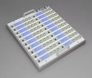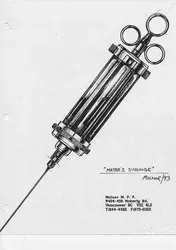 Featured 4 interchangeable glass vials, and knurled, detent-indexed "vial selection dial".