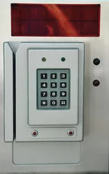 Card-Swipe Access Control Unit with Keypad. Features simulated, self-contained operation. (Shown here in "ACCESS DENIED" mode.)