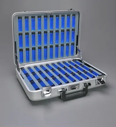 Featured a motorized specimen-chamber drawer fabricated from aluminium & polished stainless steel.