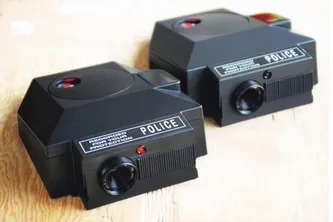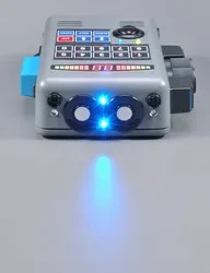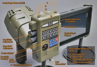 Front of the unit features simulated sensors and a user-activated white-light illuminator...