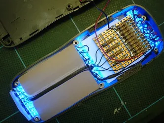 Panels connected to remote control, cables & junction box (LED electronics provided by Steven Genser of Robotic Effects).