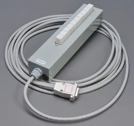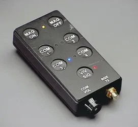 This cable connected remote unit providers power and function control. Power is provided via two (internal) 9-volt batteries.