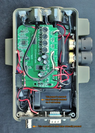 This improved battery performance greatly from the single internal battery the rental scanner normally used. Additionally, this allowed the wiring of the flashlight's pushbutton into the power circuit. This provided the user the option of activating the scanner with pistol grip located switch, or from the main power switch located on the scanner itself.