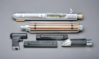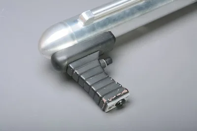The power packs. One unit possesses magnets for coupling with the main weapon (the other depicts an unused "spare").