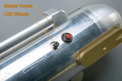 Lighting controls. Internally powered, via a single 9 volt battery (accessible through the end-cap of the main weapon).