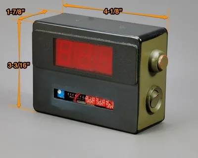 Main features identified. Detonator wires are attached by pushing the connection terminal tab, then inserting the wire into terminal opening. (Wire is captured by spring loaded contacts.) Powered by 1- 9 volt battery.