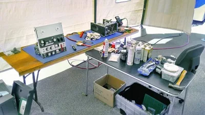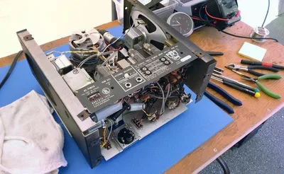 One of the machines removed from it's case… ready to be serviced.