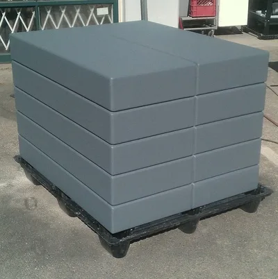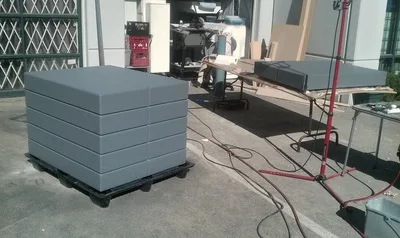 The large slabs were actually made from expanded-foam polyurethane sheet. A box was made the represented the entire load, and was then routed with line-breaks to suggest separate pieces.