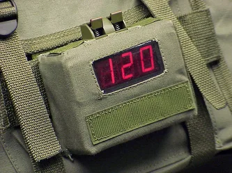 Countdown timer removed. (Attaches to explosives satchel with Velcro tabs.)