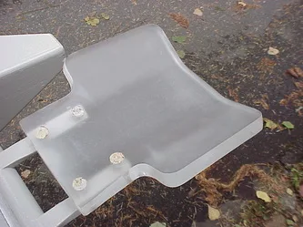Patient platform - 3/4 rear view. Entire bed pallet can be moved horizontally toward the imager unit. This allows the headrest aspect to be positioned in or out of imager aperture.