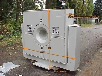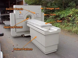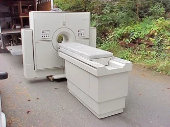 This is a replica of an existing real-world machine made by Siemens. Photo depicts complete unit (patient platform & imager unit). Properly broken-down, both units are small enough to pass through standard doors.